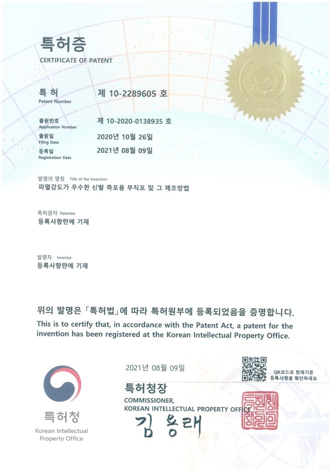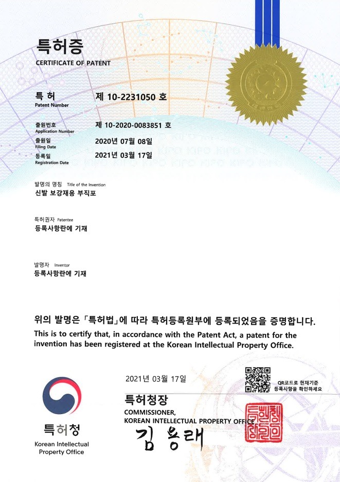 - 충격강도와 탄성이 우수한 신발 중창용 시트 개발 및 특허 출원